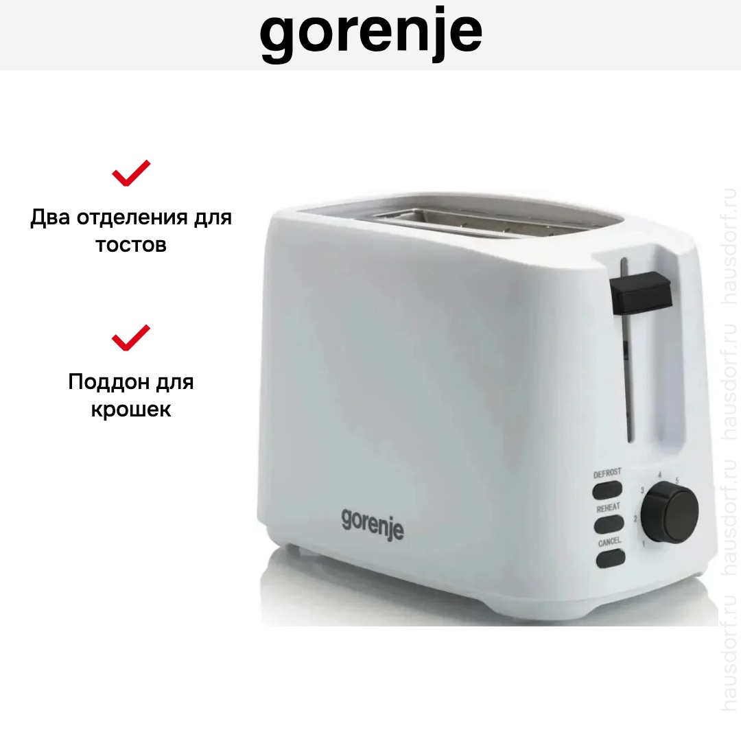 Стильный тостер Gorenje имеет компактный корпус на устойчивых ножках, благодаря которым не пошатывается, даже если хлеб выпрыгивает вверх в конце приготовления. Основной материал, из которого изготовлен прибор, — пластик. Его главный оттенок — белый. Простое и понятное механическое управление позволяет быстро разобраться во всех функциях. Простое и понятное электронное управление позволяет быстро разобраться во всех функциях. На корпусе расположены кнопочные+поворотные переключатели для изменения настроек.