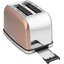 Стильный тостер Maunfeld имеет компактный корпус на устойчивых ножках, благодаря которым не пошатывается, даже если хлеб выпрыгивает вверх в конце приготовления. Основной материал, из которого изготовлен прибор, — нержавеющая сталь. Его главный оттенок — бронза. Простое и понятное механическое управление позволяет быстро разобраться во всех функциях. Простое и понятное электронное управление позволяет быстро разобраться во всех функциях. На корпусе расположены кнопочные+поворотные переключатели для изменения настроек. Благодаря небольшому дисплею еще удобнее следить за процессом.
