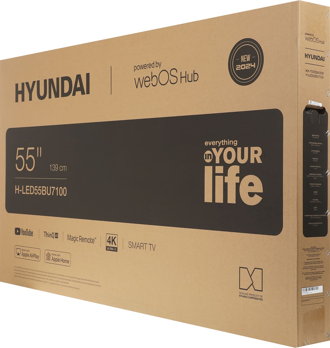 Телевизор Hyundai H-LED65BU7100 сочетает большой экран и минималистичный корпус, который будет хорошо смотреться в любой современной гостиной. Безрамочный дизайн делает панель визуально легче и позволяет сосредоточиться на картинке. Тонкий профиль и лаконичная подставка экономят место, возможно крепление техники на стену по стандарту VESA 300×300. Материалы корпуса не требуют сложного ухода и сохраняют привлекательный вид надолго.