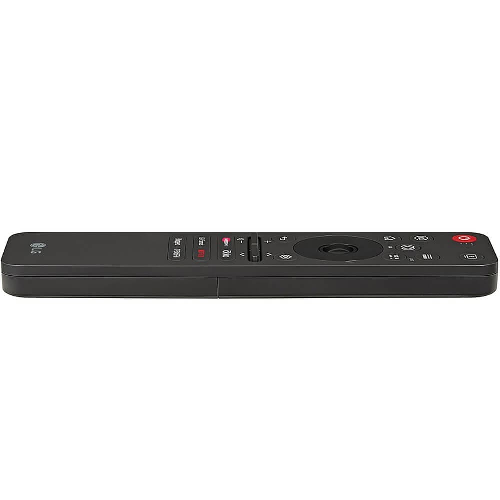 Корпус выполнен в сдержанном сером оттенке и отличается ультратонким профилем толщиной всего 4,59 см. Без подставки размеры составляют 83,2×144,9×4,59 см, а вес всего 17,1 кг, что облегчает монтаж на стену по стандарту VESA 300×200. В комплектации идут пульт Magic Remote MR25, подставка и инструкция, а для настенного крепления предусмотрен удобный набор параметров монтажа. Интерфейс WebOS 25 делает навигацию быстрой, а режим Always Ready превращает экран в галерею, часы или музыкальную панель.