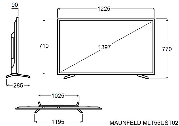 Телевизор Maunfeld MLT55UST02 — это продуманное сочетание современных технологий и функционального дизайна, созданное для комфортного домашнего просмотра. Его 55-дюймовый LED-дисплей с прямой подсветкой (Direct LED) обеспечивает стабильную яркость по всей поверхности экрана, минимизируя неравномерности освещения и создавая гармоничную картинку. Такая архитектура подсветки способствует естественной цветопередаче и снижает утомляемость глаз при длительном использовании.