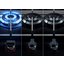 Стильные не нагревающиеся поворотные ручки фиксируются на каждом уровне, а на панели управления подсвечиваются возможные значения мощности. Поворотом этой же ручки до упора можно зажечь конфорку без зажигалок или спичек — для этого используется функция электрического поджига. Для защиты от утечки газа при случайном угасании пламени предусмотрена система «Газ-контроль».