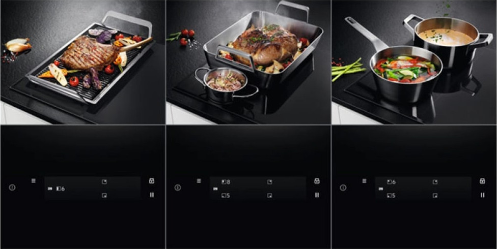 Вы можете объединить две и более конфорки в одну. Благодаря этому приготовление в нестандартной, овальной или крупной посуде не представляет проблем.