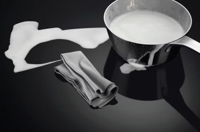 Хорошей альтернативой рамке является металлический профиль, который обычно устанавливается только спереди или сбоку. Он также не позволяет жидкости стекать на столешницу, но не «съедает» полезную площадь. Что касается варочных панелей без рамки, неизменной популярностью пользуются модели со скошенным краем. Такая обработка называется фацетной — внешняя сторона панели имеет огранку под углом 45 градусов. Такая панель очень легко чистится и эффектно выглядит, а современные методы огранки защищают края от сколов.