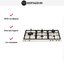 Варочная панель в дизайне слоновой кости с фурнитурой в цвете «хром». На поверхности расположено 5 латунных конфорок разного диаметра. Крупная конфорка WOK находится слева, может набирать мощность до 5 кВт. Ручка управления этой зоной расположена отдельно. Поворотные переключатели установлены на фронтальном крае, вы можете включать газ одним нажатием благодаря функции автоподжига.