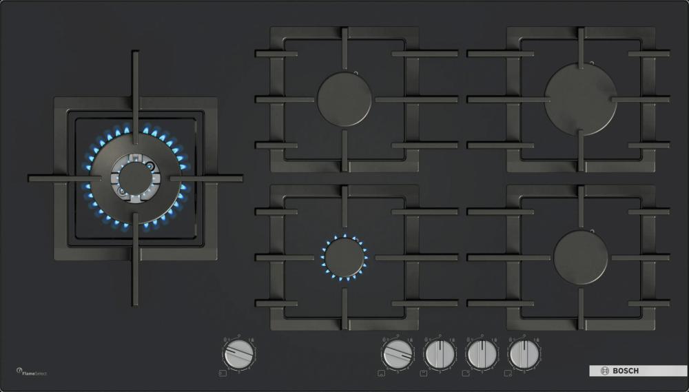 Модель Бош PPM9A6I40 входит в дизайн-линейку: Serie | 6. Цвет — черный. Благодаря отсутствию рамки она отлично впишется в интерьер и не займет лишнее место на столешнице, которое можно использовать для работы. Открытый огонь не страшен ни вашей посуде, ни вам, так как горелки надежно закрыты решетками. Материал самой поверхности: закаленное стекло. Управление этой моделью механическое. Для переключения уровней нагрева, выбора функций используются следующие переключатели: поворотные. Простая система контроля за прибором делают его более универсальным, ведь разобраться сможет кто угодно.