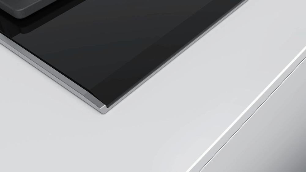 Хорошей альтернативой рамке является металлический профиль, который обычно устанавливается только спереди или сбоку. Он также не позволяет жидкости стекать на столешницу, но не «съедает» полезную площадь. Что касается варочных панелей без рамки, неизменной популярностью пользуются модели со скошенным краем. Такая обработка называется фацетной — внешняя сторона панели имеет огранку под углом 45 градусов. Такая панель очень легко чистится и эффектно выглядит, а современные методы огранки защищают края от сколов.