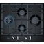 Газовая варочная панель Bosch PCI6A6B90R — независимая панель с ромбовидным расположением конфорок. Она относится к дизайн-линии Serie | 6 и отличается поверхностью из черной эмалированной стали с черной рамкой. На темном фоне выделяется стильная фурнитура серебристого цвета: поворотные механические выключатели расположены на фронтальной части изделия.