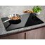 Хорошей альтернативой рамке является металлический профиль, который обычно устанавливается только спереди или сбоку. Он также не позволяет жидкости стекать на столешницу, но не «съедает» полезную площадь. Что касается варочных панелей без рамки, неизменной популярностью пользуются модели со скошенным краем. Такая обработка называется фацетной — внешняя сторона панели имеет огранку под углом 45 градусов. Такая панель очень легко чистится и эффектно выглядит, а современные методы огранки защищают края от сколов.