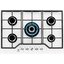 Выбор газовой варочной панели чаще всего обусловлен тем, что в частный дом или квартиру проведен именно газ в качестве обогрева. Работать с этой моделью довольно просто, так как мощность нагрева видна невооруженным взглядом — по силе огня в горелке. Количество конфорок в этой модели: 5.
