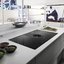 Вытяжка, встроенная в варочную панель — достаточно удобный вариант, позволяющий сэкономить место в кухне. Такая конструкция позволяет лучше улавливать испарения, не давая им распространяться по всему помещению, и способствует более качественной очистке воздуха. Большинство подобных моделей может работать только в режиме рециркуляции воздуха, с удалением капель жира, сажи, неприятных запахов при помощи системы фильтров. Работу в режиме отвода загрязненного воздуха через систему вентиляции организовать довольно сложно, поскольку вытяжка располагается низко над полом. Часто варочная панель находится на кухонном острове, что также мешает присоединению к вентиляции. Еще одна особенность подобных моделей состоит в том, что под варочной панелью нельзя разместить духовку или другую технику, так как место будет занято.