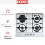 Выбор газовой варочной панели чаще всего обусловлен тем, что в частный дом или квартиру проведен именно газ в качестве обогрева. Работать с этой моделью довольно просто, так как мощность нагрева видна невооруженным взглядом — по силе огня в горелке. Количество конфорок в этой модели: 4. Горелки с двойной короной позволяют увеличивать мощность нагрева в зависимости от диаметра посуды.