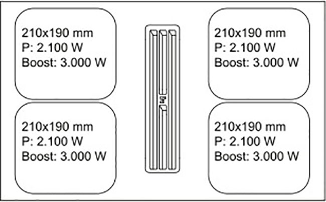 Ширина варочной панели — одна из важнейших ее характеристик, которая зависит главным образом от количества и порядка размещения конфорок. Тип нагрева на нее практически не влияет. Как правило, конфорки размещаются в два ряда, причем более мощные располагаются во втором ряду. Производители выпускают также модели с одним рядом конфорок — например, для установки на кухонном острове, — а также с расположением зон нагрева в форме ромба или трапеции.