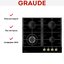 Газовая варочная панель на закаленном стекле дополнена прочной решеткой из чугуна. Держатель состоит из двух частей для удобства обслуживания. Благодаря шероховатой поверхности обеспечивается дополнительная устойчивость посуде. Прибор оснащен интегрированным автоподжигом, а также системой газового контроля.