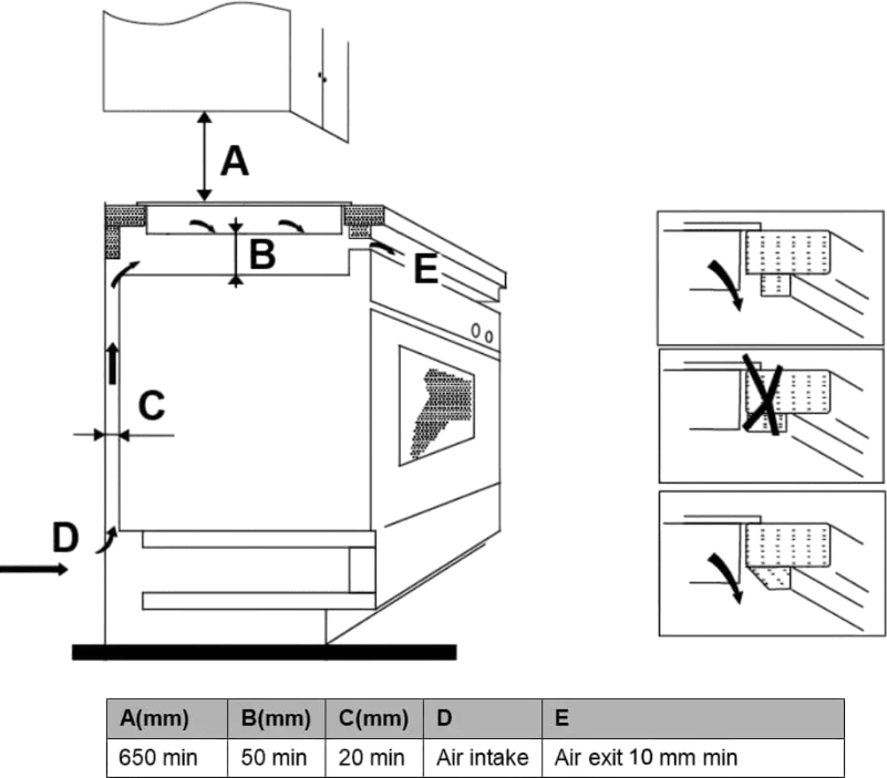 Также опасно устанавливать варочную панель вплотную к холодильнику или шкафу: следует оставить между ними расстояние не менее 30 см. Зазор между задней стороной варочной панели и стенкой кухни составляет обычно не менее 50 см для электрических панелей и 70 см — для газовых. Иногда стену кухни защищают огнеупорной панелью.