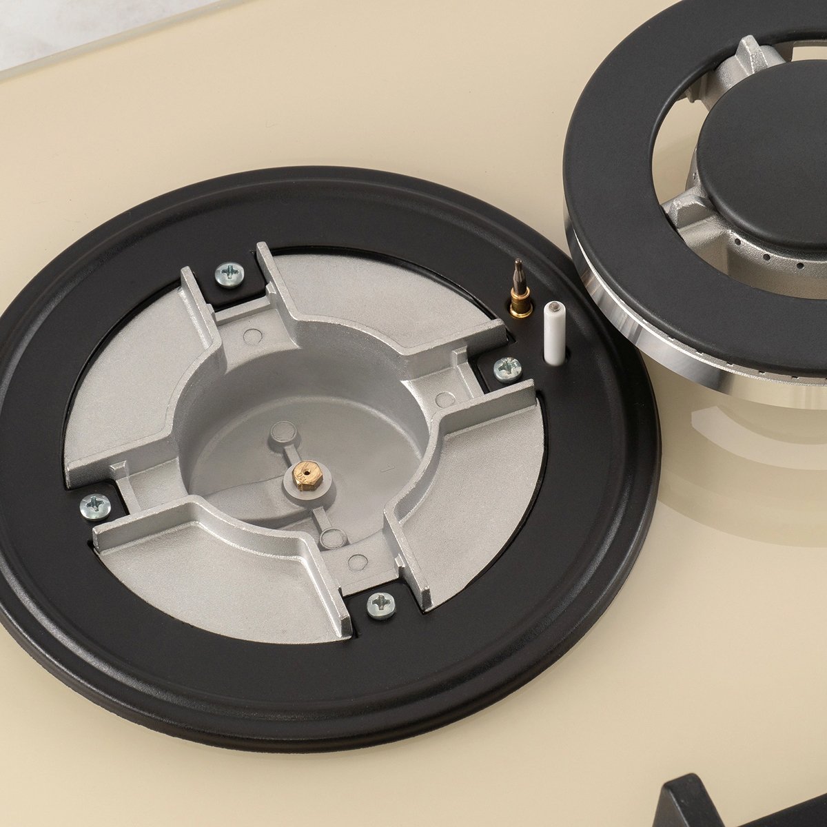 Цвет — бежевый. Благодаря отсутствию рамки она отлично впишется в интерьер и не займет лишнее место на столешнице, которое можно использовать для работы. Открытый огонь не страшен ни вашей посуде, ни вам, так как горелки надежно закрыты решетками. Материал самой поверхности: закаленное стекло. Управление этой моделью механическое. Для переключения уровней нагрева, выбора функций используются следующие переключатели: поворотные. Простая система контроля за прибором делают его более универсальным, ведь разобраться сможет кто угодно.