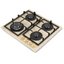 Выбор газовой варочной панели чаще всего обусловлен тем, что в частный дом или квартиру проведен именно газ в качестве обогрева. Работать с этой моделью довольно просто, так как мощность нагрева видна невооруженным взглядом — по силе огня в горелке. Количество конфорок в этой модели: 4. Горелки с двойной короной позволяют увеличивать мощность нагрева в зависимости от диаметра посуды.