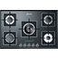 На лицевой панели установлены 5 функциональных конфорок, каждая из которых регулируется при помощи отдельных кнопок, расположенных в горизонтальном ряду на нижней стороне платформы. Имеется также электроподжиг, делающий управление более легким. Лицевая панель выполнена с использованием прочного закаленного стекла.