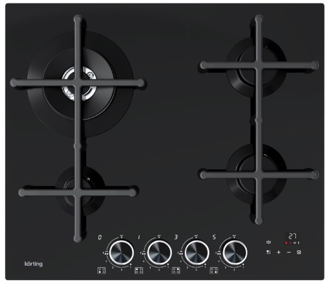 Управление осуществляется механическими поворотными переключателями с фронтальным расположением, а цифровой дисплей информирует о текущих установках. Электроподжиг автоматический, он избавляет от необходимости использовать спички или зажигалки. Таймер позволяет задать время приготовления и не контролировать процесс постоянно. Индикатор остаточного тепла подскажет, когда поверхность остыла до безопасной температуры.