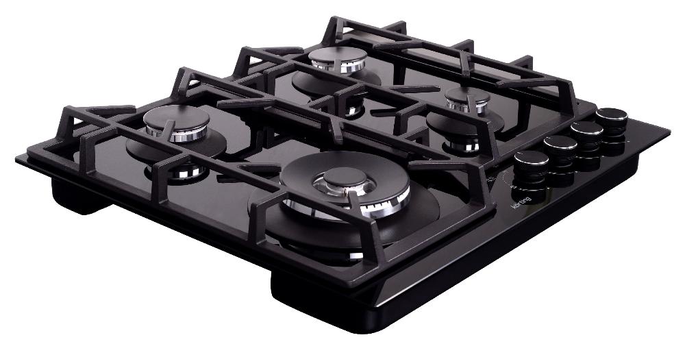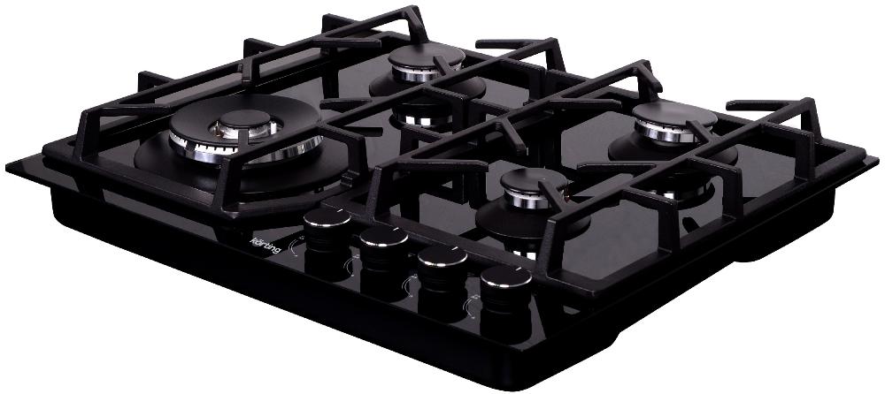 Выбор газовой варочной панели чаще всего обусловлен тем, что в частный дом или квартиру проведен именно газ в качестве обогрева. Работать с этой моделью довольно просто, так как мощность нагрева видна невооруженным взглядом — по силе огня в горелке. Количество конфорок в этой модели: 4.