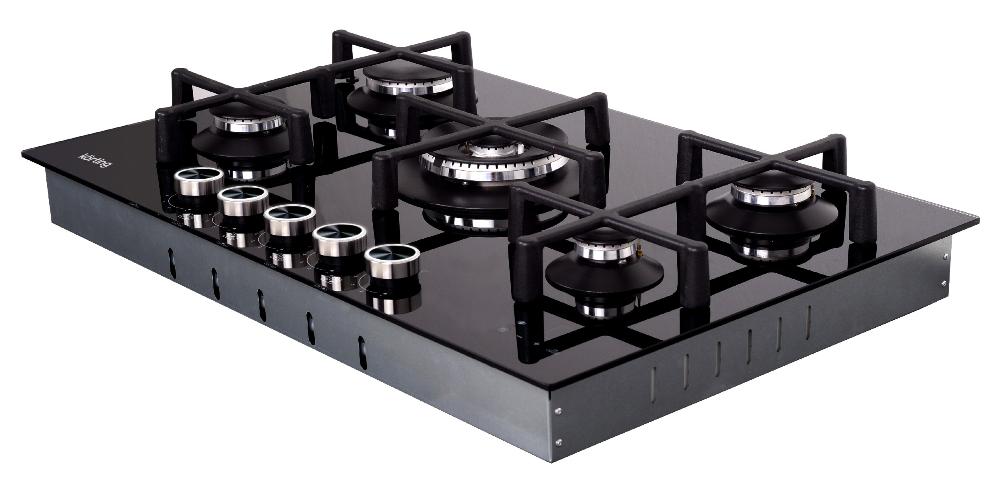 Выбор газовой варочной панели чаще всего обусловлен тем, что в частный дом или квартиру проведен именно газ в качестве обогрева. Работать с этой моделью довольно просто, так как мощность нагрева видна невооруженным взглядом — по силе огня в горелке. Количество конфорок в этой модели: 5.