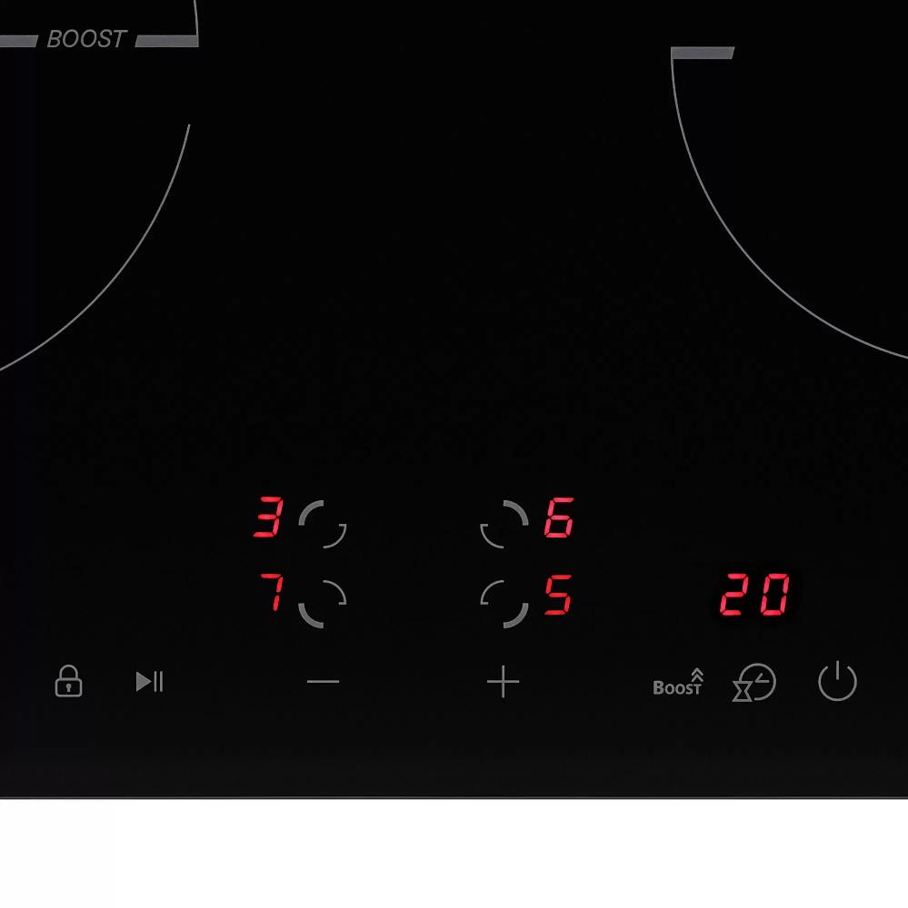 Варочная панель работает на индукционном нагреве — это значит, что повышается температура непосредственно посуды, в которой готовится блюдо. Таким образом промежуточная ступень с предварительным нагревом конфорки пропускается — сокращается время, повышается безопасность. Количество конфорок в этой модели: 4.