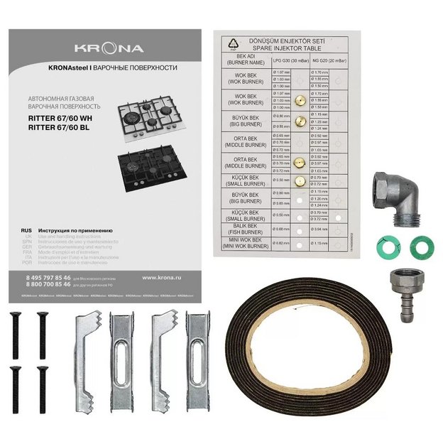 Форсунки (жиклеры) для баллонного газа входят в комплект поставки практически всех газовых варочных панелей.