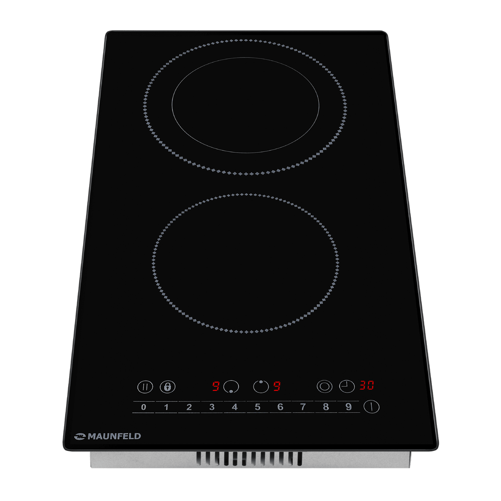 Электрическая варочная панель Maunfeld EVCE292SDPBK — компактный и стильный прибор, созданный для тех, кто ценит эргономику и лаконичный дизайн на небольшой кухне. Черное стеклокерамическое покрытие придает рабочей поверхности благородный и современный вид, легко сочетается с разными интерьерными решениями и визуально расширяет пространство. За счет небольшой высоты — 5.1 см — и аккуратной ширины 28.8 см конструкция выглядит утонченно и не перегружает столешницу, а глубина 52 см и ниша для встраивания 26.5×49.5 см обеспечивают простоту монтажа даже в компактных гарнитурах. Независимый тип установки дает свободу планирования кухонного пространства, позволяя устанавливать модуль отдельно от духового шкафа, а накладной способ крепления делает монтаж быстрым и удобным. Удобство эксплуатации задает фронтальное электронное управление с сенсорными переключателями TouchControl, обеспечивающими плавный выбор параметров и точную регулировку мощности на 9 ступеней; интуитивная панель позволяет работать одной рукой и легко очищается от загрязнений благодаря гладкой поверхности. Две зоны нагрева Hi-Light с различными диаметрами — задняя 200 мм мощностью 1 кВт и передняя 165 мм мощностью 1.2 кВт — дают возможность готовить одновременно в посуде разного размера, контролируя температуру и экономя электроэнергию при необходимости. Наличие таймера расширяет функционал, позволяя программировать завершение нагрева, а режим паузы временно останавливает процесс, чтобы безопасно перемещать посуду или добавить ингредиенты. Безопасность остро проработана: встроенная блокировка управления и защита от детей предотвращают случайные нажатия, а автоматическая блокировка всех элементов при попадании влаги на панель исключает риск неверной команды; при перегреве сработает отключение, сохраняющее целостность прибора. Электрическое подключение рассчитано на напряжение 220-240 В и частоту 50-60 Гц, длина кабеля 110 см упрощает подключение к стандартным розеткам без дополнительных удлинителей. Легкий вес около 4.26 кг облегчает установку и обслуживание, а компактный габаритный профиль делает изделие идеальным выбором для арендуемых квартир, компактных студий и небольших кухонь. Эта варочная панель Maunfeld объединяет в себе утонченную эстетику, продуманную эргономику и продвинутую электронику управления, предоставляя пользователю надежный рабочий инструмент для повседневного приготовления блюд без лишних сложностей и с высоким уровнем безопасности.