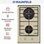 Газовая варочная панель MAUNFELD EGHE.32.63CBG/G — компактная модель в классическом дизайне. Бежевая поверхность изготовлена из металла, он обладает высокими эксплуатационными свойствами и прост в уходе. Решетка сделана с использованием сплошного крестообразного соединения над конфорками для повышенной устойчивости.