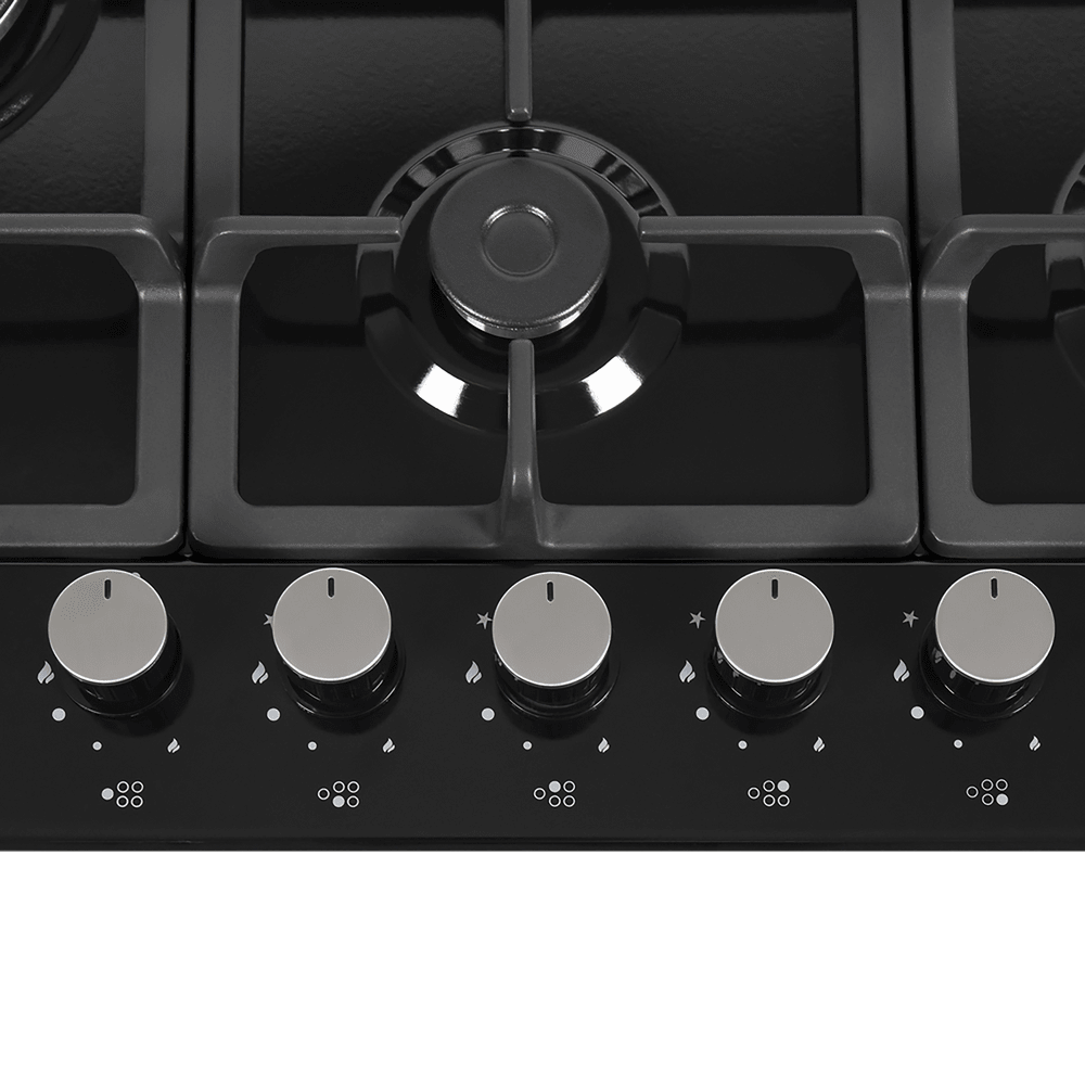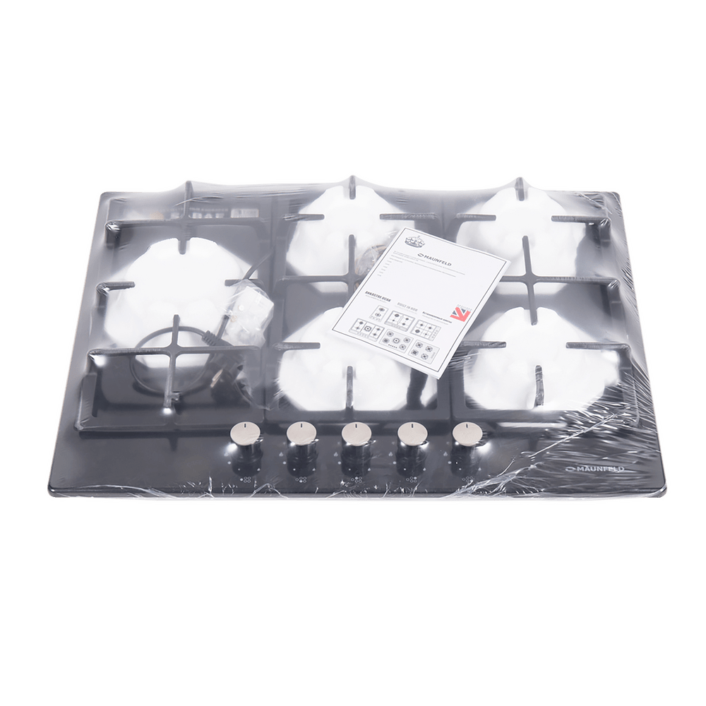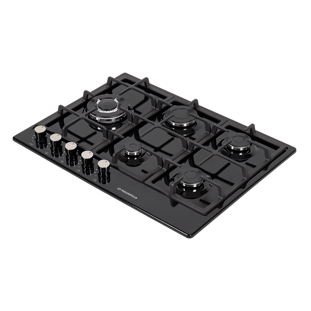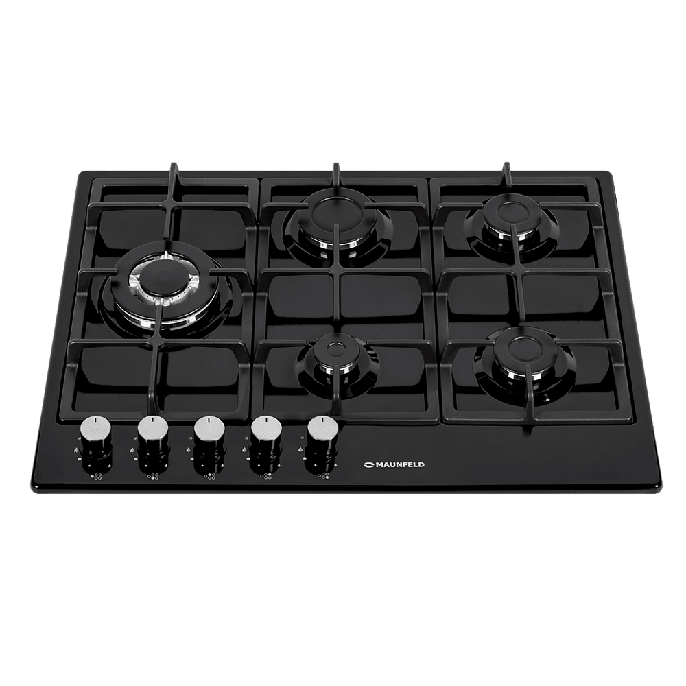 Выбор газовой варочной панели чаще всего обусловлен тем, что в частный дом или квартиру проведен именно газ в качестве обогрева. Работать с этой моделью довольно просто, так как мощность нагрева видна невооруженным взглядом — по силе огня в горелке. Количество конфорок в этой модели: 5.