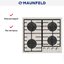 Maunfeld EGHG.64.6CBG/G — независимая газовая варочная панель с четырьмя конфорками. Ширина ее составляет 60 см, так что панель встраивается в стандартную столешницу. Поверхность изготовлена из термостойкого стекла бежевого цвета. Механическая панель управления находится справа в передней части. Слева в первом ряду находится самая большая конфорка SABAF мощностью 2,6 кВт. Регулировка интенсивности пламени производится при помощи поворотных переключателей. Для включения конфорок можно использовать электроподжиг. Подача газа автоматически прерывается, если пламя погаснет.