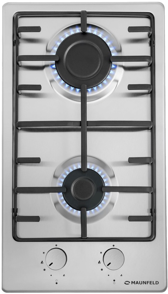 Выбор газовой варочной панели чаще всего обусловлен тем, что в частный дом или квартиру проведен именно газ в качестве обогрева. Работать с этой моделью довольно просто, так как мощность нагрева видна невооруженным взглядом — по силе огня в горелке. Количество конфорок в этой модели: 2.