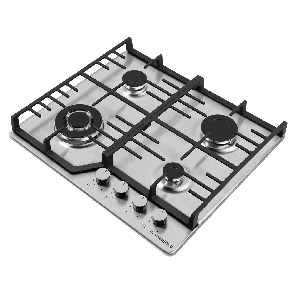 Выбор газовой варочной панели чаще всего обусловлен тем, что в частный дом или квартиру проведен именно газ в качестве обогрева. Работать с этой моделью довольно просто, так как мощность нагрева видна невооруженным взглядом — по силе огня в горелке. Количество конфорок в этой модели: 4.