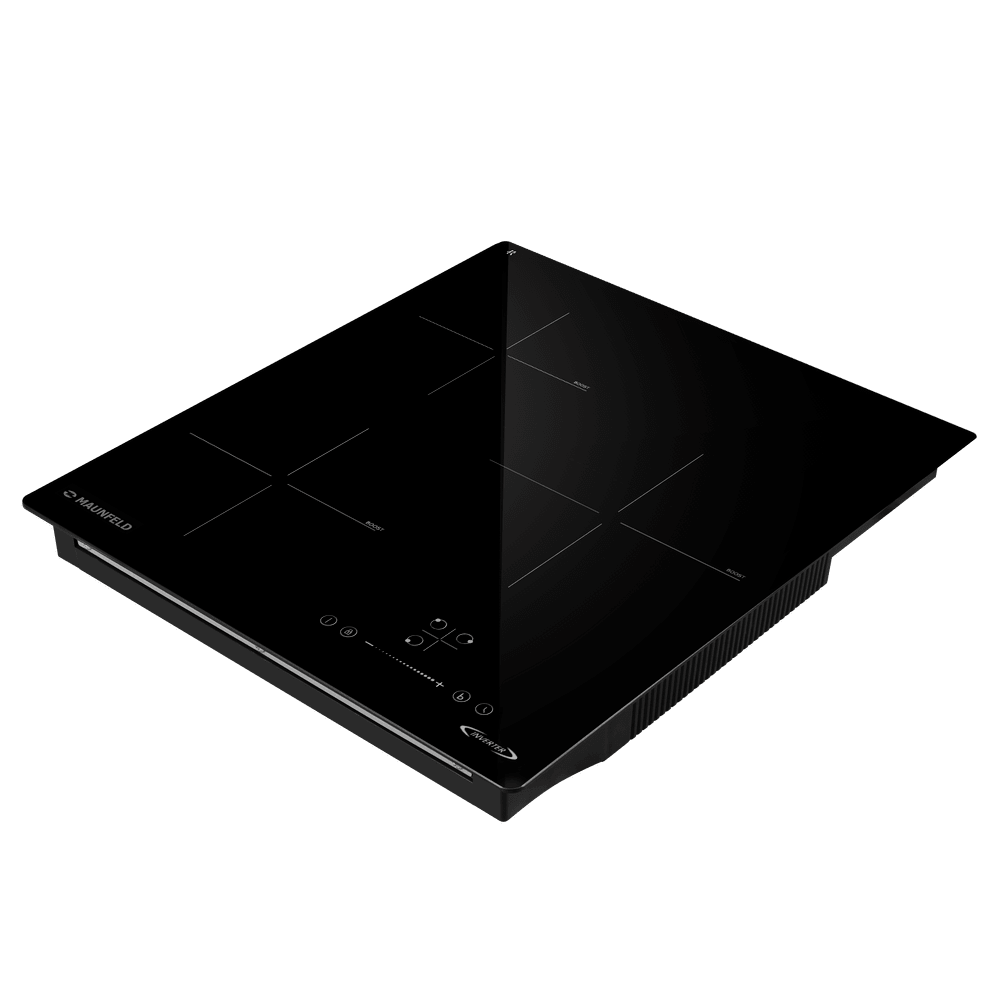 Варочная панель работает на индукционном нагреве — это значит, что повышается температура непосредственно посуды, в которой готовится блюдо. Таким образом промежуточная ступень с предварительным нагревом конфорки пропускается — сокращается время, повышается безопасность. Количество конфорок в этой модели: 3.