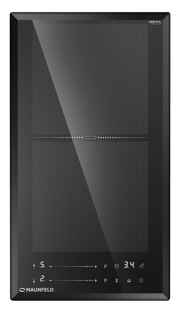 Варочная панель работает на индукционном нагреве — это значит, что повышается температура непосредственно посуды, в которой готовится блюдо. Таким образом промежуточная ступень с предварительным нагревом конфорки пропускается — сокращается время, повышается безопасность. Количество конфорок в этой модели: 2.