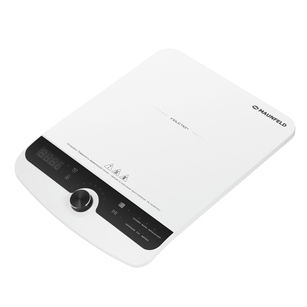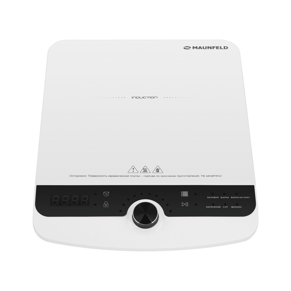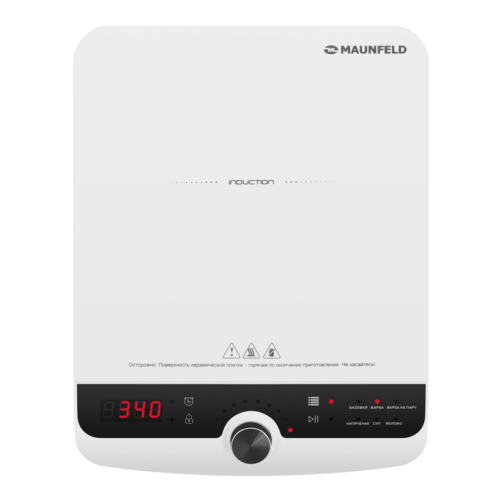 Варочная панель работает на индукционном нагреве — это значит, что повышается температура непосредственно посуды, в которой готовится блюдо. Таким образом промежуточная ступень с предварительным нагревом конфорки пропускается — сокращается время, повышается безопасность. Количество конфорок в этой модели: 1.