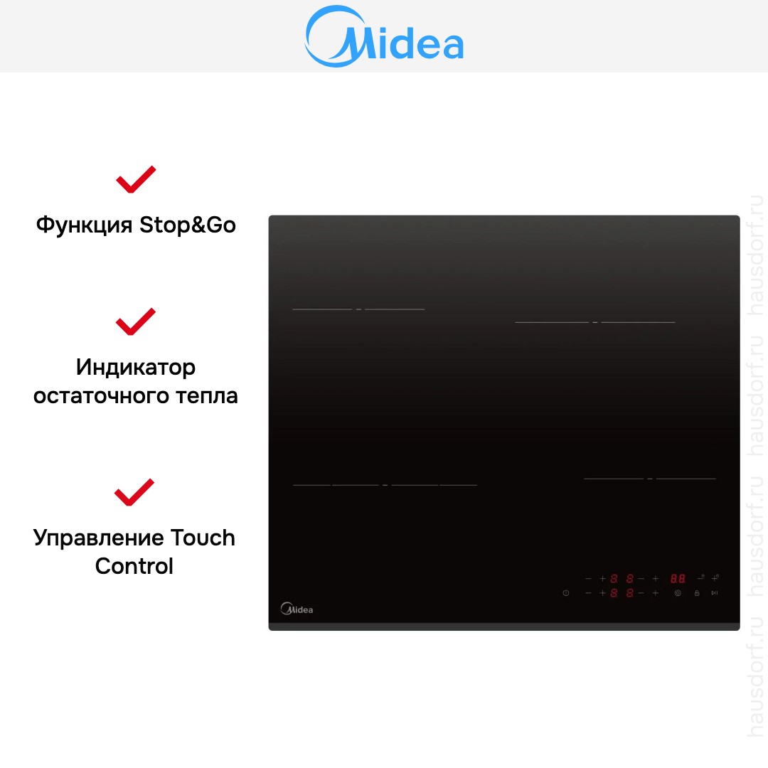 Зоны нагрева в модели Midea стандартные, нет дополнительных особенностей.