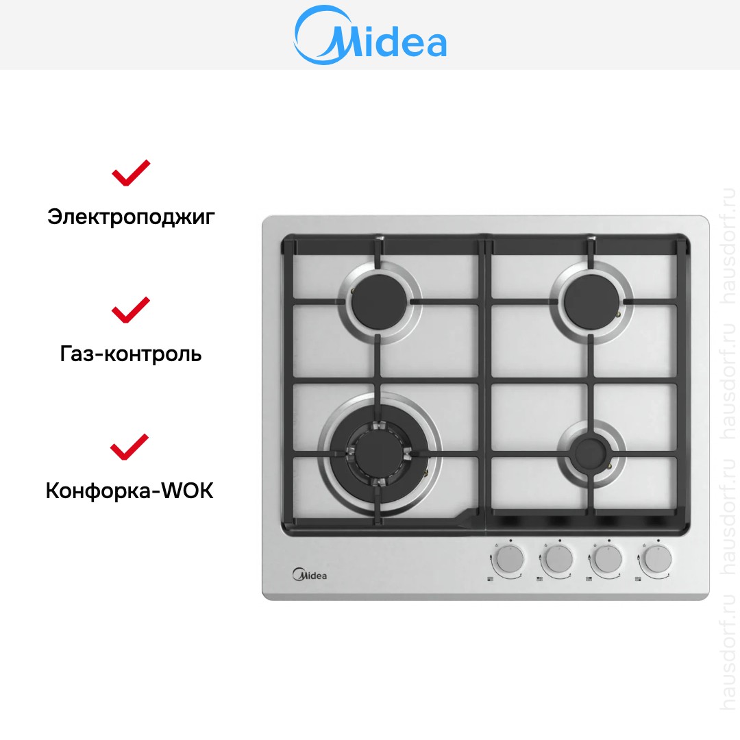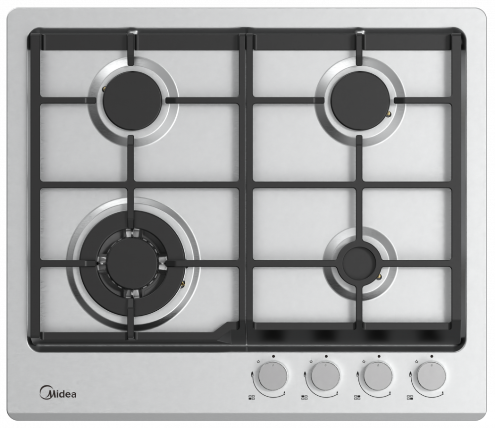 Выбор газовой варочной панели чаще всего обусловлен тем, что в частный дом или квартиру проведен именно газ в качестве обогрева. Работать с этой моделью довольно просто, так как мощность нагрева видна невооруженным взглядом — по силе огня в горелке. Количество конфорок в этой модели: 4.