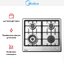 Выбор газовой варочной панели чаще всего обусловлен тем, что в частный дом или квартиру проведен именно газ в качестве обогрева. Работать с этой моделью довольно просто, так как мощность нагрева видна невооруженным взглядом — по силе огня в горелке. Количество конфорок в этой модели: 4.