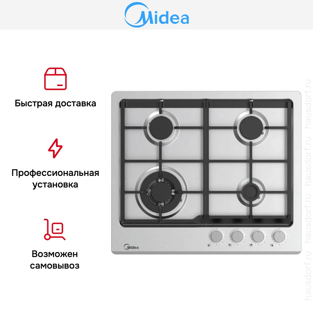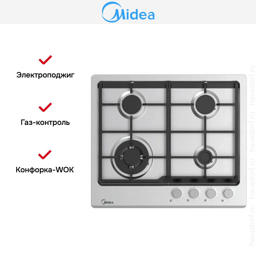 Выбор газовой варочной панели чаще всего обусловлен тем, что в частный дом или квартиру проведен именно газ в качестве обогрева. Работать с этой моделью довольно просто, так как мощность нагрева видна невооруженным взглядом — по силе огня в горелке. Количество конфорок в этой модели: 4.