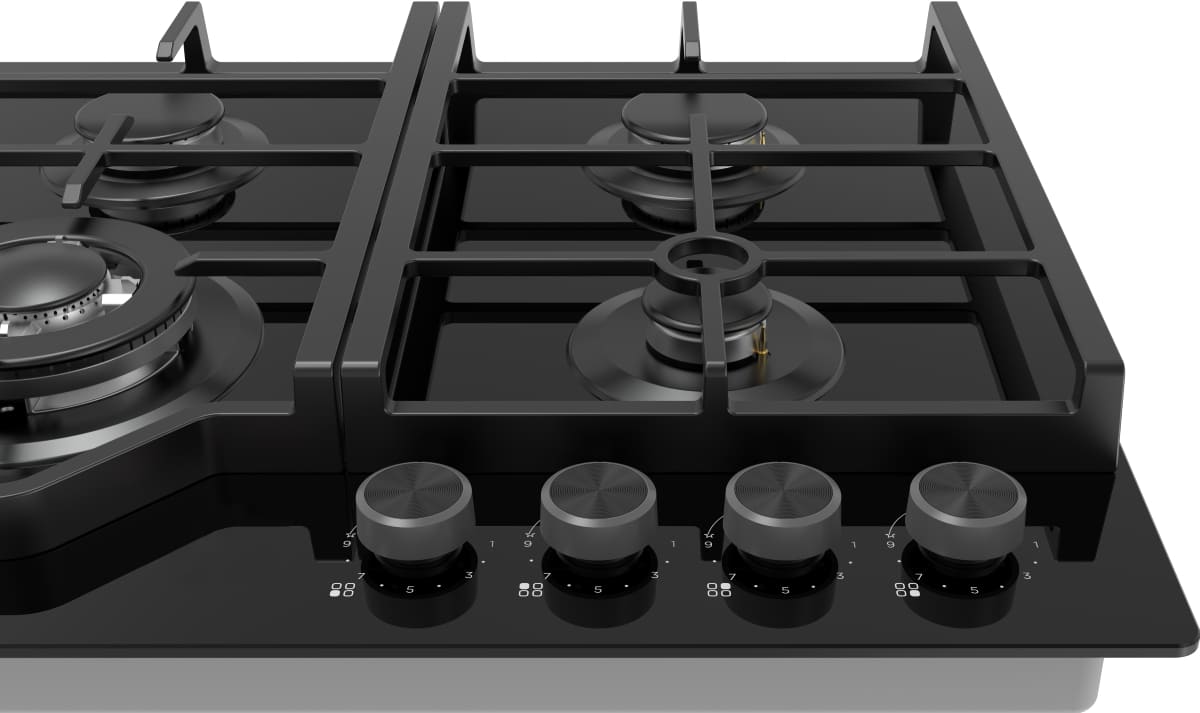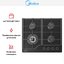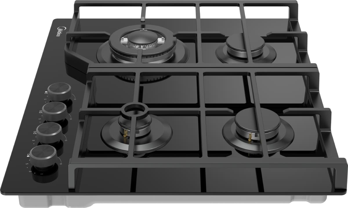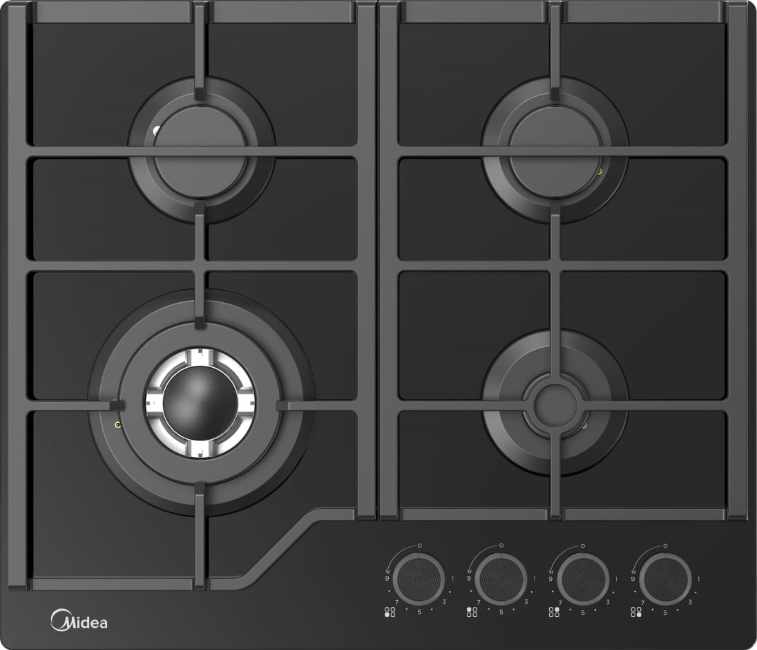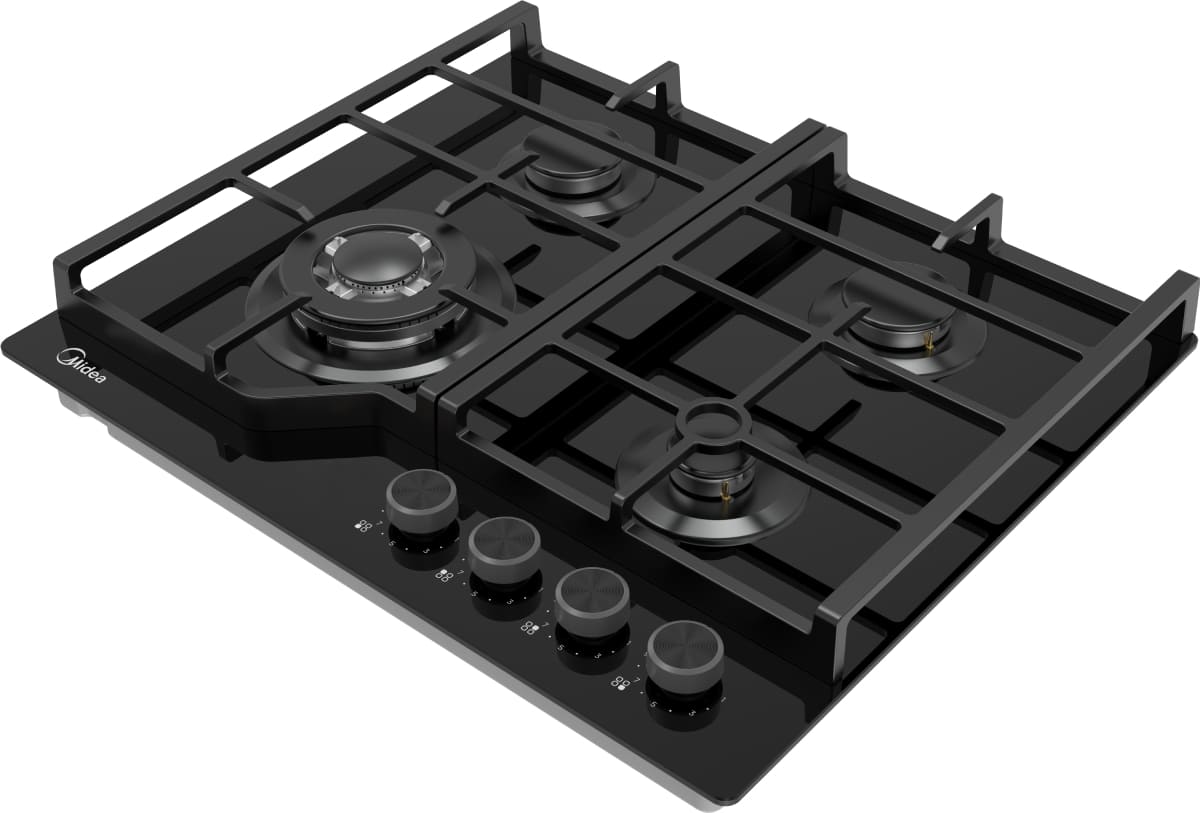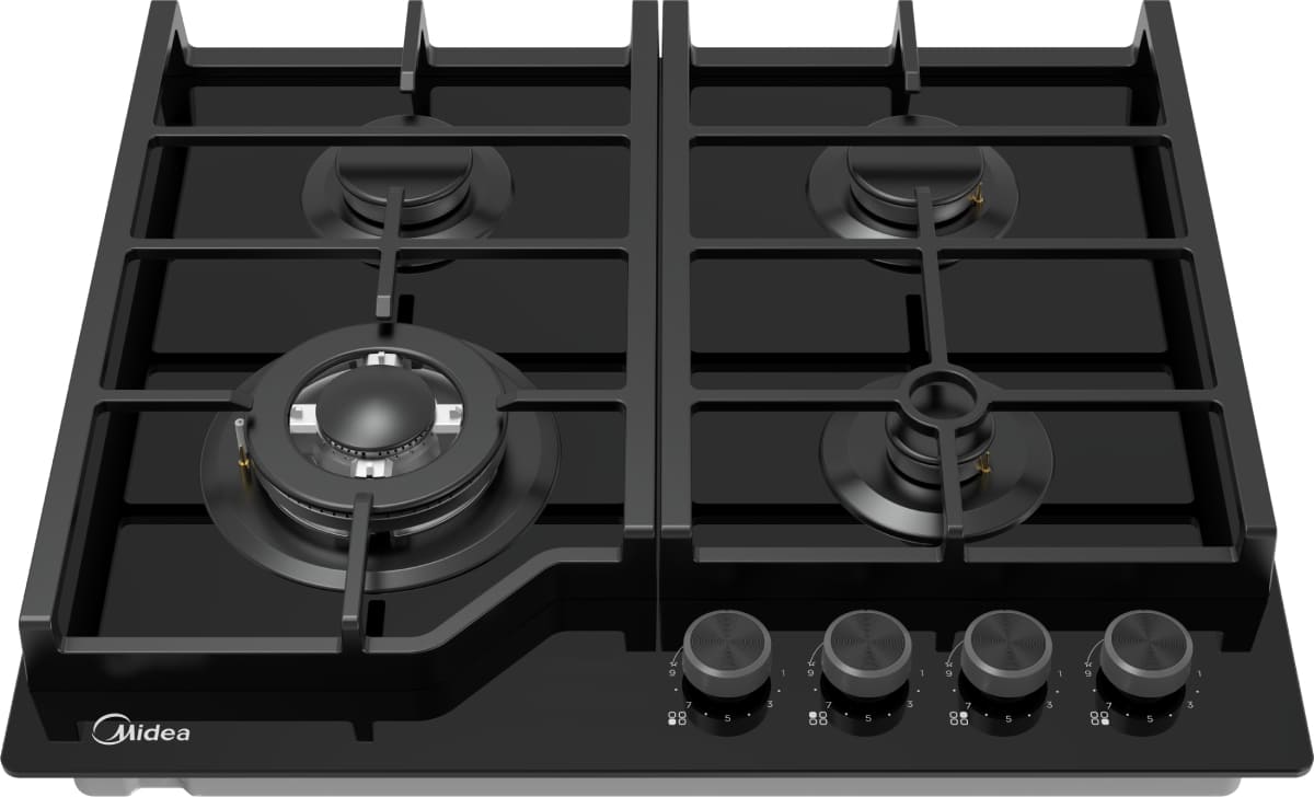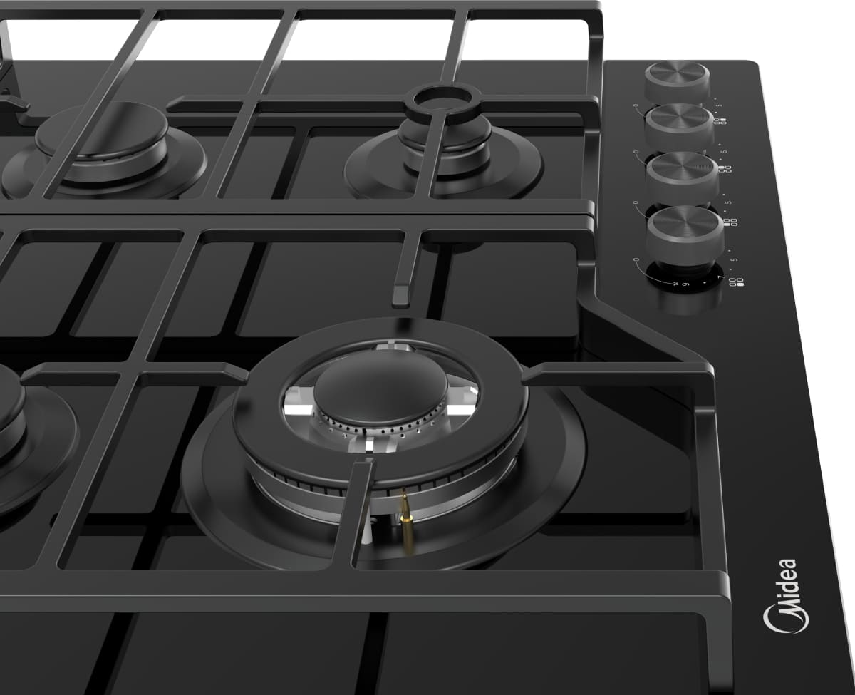 Варочная панель Midea MG697TGB — надежная и эстетичная газовая модель, выполненная в глубоком черном цвете с безрамочным оформлением, что придает ей современный и лаконичный вид. Серая фурнитура создает тонкий контраст, подчеркивая сдержанную элегантность дизайна и гармонично вписываясь в различные кухонные интерьеры.