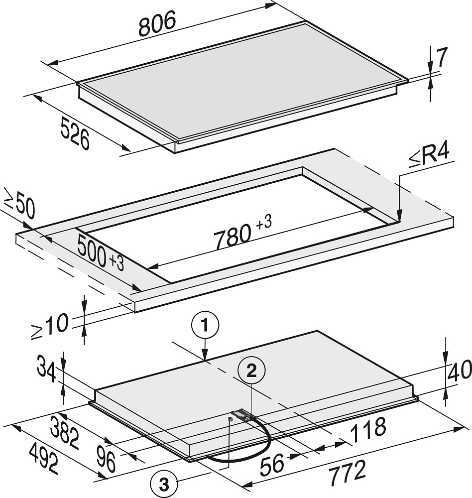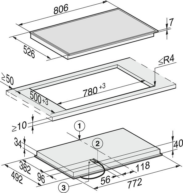 Электрические и индукционные варочные панели из стали, эмали и стеклокерамики имеют толщину от 4 до 5,5 cм, но выглядят более низкими, так как на них отсутствуют выступающие горелки. Как правило, подробные требования к толщине столешницы для установки приводятся в руководстве пользователя.