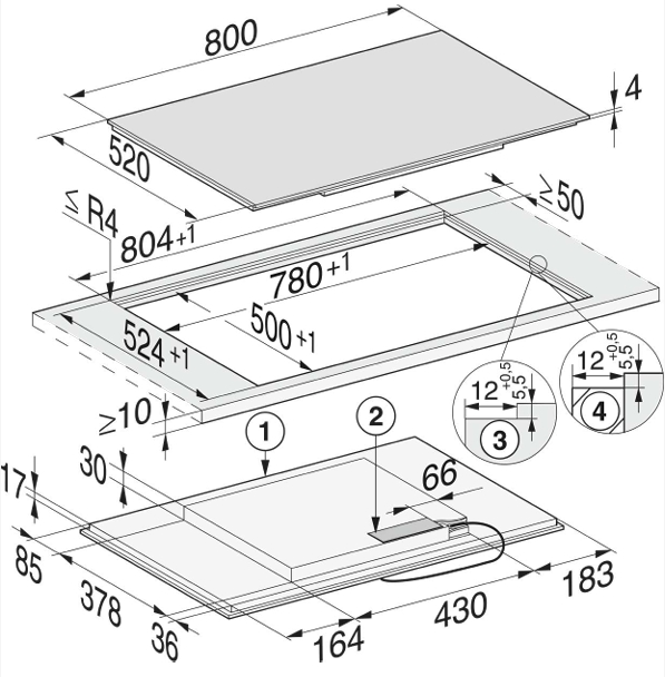 Электрические и индукционные варочные панели из стали, эмали и стеклокерамики имеют толщину от 4 до 5,5 cм, но выглядят более низкими, так как на них отсутствуют выступающие горелки. Как правило, подробные требования к толщине столешницы для установки приводятся в руководстве пользователя.
