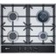 Ширина 60 см позволяет встраивать эту модель в стандартную кухонную столешницу. Поверхность изготовлена из нержавеющей стали — прочного, долговечного и легкого в очистке материала. Раздельная решетка из чугуна с эмалевым покрытием позволяет надежно разместить посуду. Варочную панель можно присоединить к баллонам с газом — с комплект входит набор жиклеров. Механическая панель управления с поворотными переключателями, индикатором остаточного тепла и цифровым дисплеем находится на фронтальной части прибора. Для точной регулировки пламени на 9 ступенях служит технология FlameSelect.