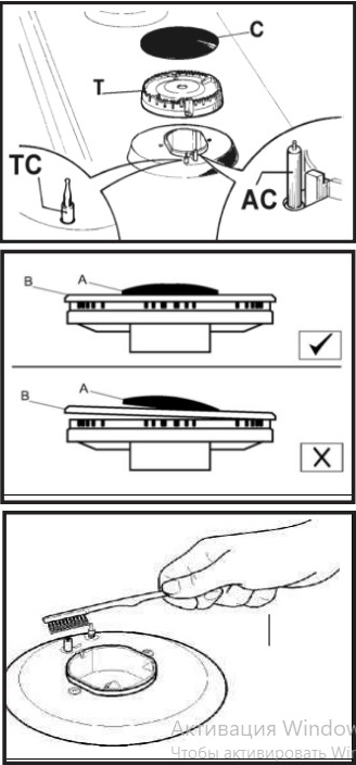 Для того, чтобы обеспечить безопасность при работе с баллонным газом, баллон подключается в варочной панели через форсунки, или жиклеры, — детали, предназначенные для распыления газовоздушной смеси. Жиклеры изготавливаются из латуни или бронзы и представляют собой болт с резьбой и отверстием в головке, через которое и подается газ — диаметр этого отверстия указывается на самом жиклере. Этот размер определяется давлением газа и характеристиками варочной панели, поэтому необходимо использовать жиклер, подходящий исключительно для данной модели. Как правило, диаметр отверстия и другие параметры можно найти и в инструкции пользователя.