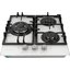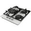 Выбор газовой варочной панели чаще всего обусловлен тем, что в частный дом или квартиру проведен именно газ в качестве обогрева. Работать с этой моделью довольно просто, так как мощность нагрева видна невооруженным взглядом — по силе огня в горелке. Количество конфорок в этой модели: 3. Горелки с двойной короной позволяют увеличивать мощность нагрева в зависимости от диаметра посуды.