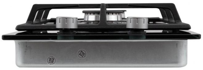 Цвет — черный. Благодаря отсутствию рамки она отлично впишется в интерьер и не займет лишнее место на столешнице, которое можно использовать для работы. Открытый огонь не страшен ни вашей посуде, ни вам, так как горелки надежно закрыты решетками. Материал самой поверхности: закаленное стекло. Управление этой моделью механическое. Для переключения уровней нагрева, выбора функций используются следующие переключатели: поворотные. Простая система контроля за прибором делают его более универсальным, ведь разобраться сможет кто угодно.