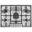 Для каждой конфорки предусмотрена своя ручка управления. Графическое обозначение помогает пользователю быстро сориентироваться в настройках для определенной конфорки. Центральное положение занимает самая мощная конфорка, оснащенная двумя рядами пламени, контурами которой можно управлять раздельно. Она обеспечивает быстрое доведение до кипения жидкости, а также позволяет экспериментировать с блюдами, которые необходимо готовить в посуде wok. Среди преимуществ: газ-контроль, автоматический электроподжиг, жиклеры для сжиженного газа в комплекте.