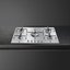 Устройство шириной 74 см оснащено пятью высокоэффективными газовыми конфорками с вертикальным пламенем и никелированными крышками. В центре находится ультрабыстрая конфорка «Двойная корона» с двумя рядами пламени, справа во втором ряду расположена быстрая конфорка увеличенной мощности. Посуда устойчиво размещается на одиночных чугунных решетках с алюминиевыми ножками: их конструкция способствует более удобной очистке поверхности. Электрический автоподжиг позволяет включать горелки одним поворотом механического переключателя с бесступенчатой регулировкой пламени.