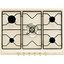 Панель оборудована пятью газовыми конфорками: 4 стандартных эмалированных конфорки + одна никелированная конфорка повышенной мощности. Рабочая поверхность выполнена в кремовых цветах, ручки мощности нагрева – позолоченные. При необходимости, панель может работать на сжиженном газе. В наличии имеется система автоматического электроподжига.